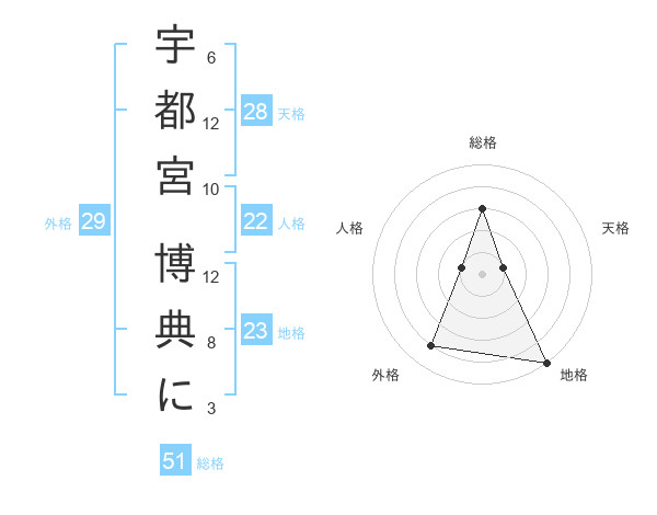 宇都宮 博典にさんを姓名の画数から五運を鑑定