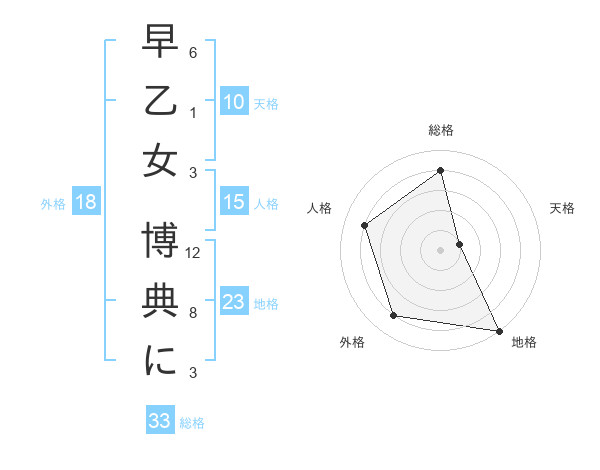 早乙女 博典にさんを姓名の画数から五運を鑑定