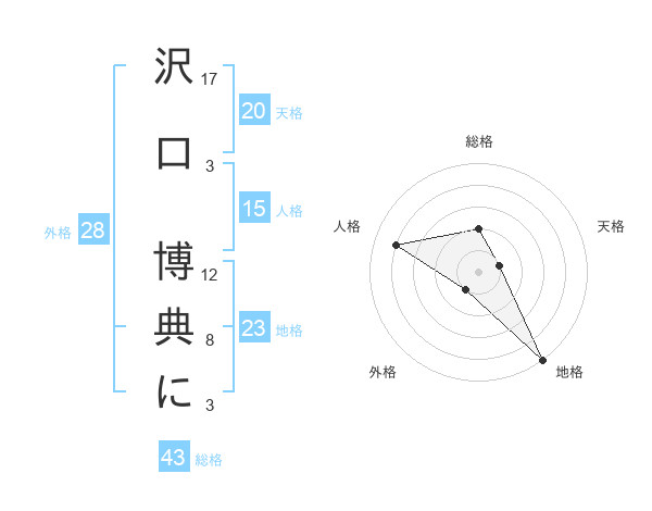 沢口 博典にさんを姓名の画数から五運を鑑定