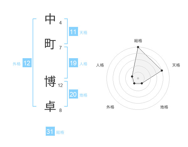 中町 博卓さんの総格は31画の5点!