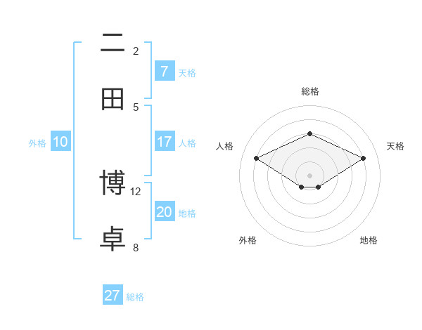 二田 博卓さんの総格は27画の3点!