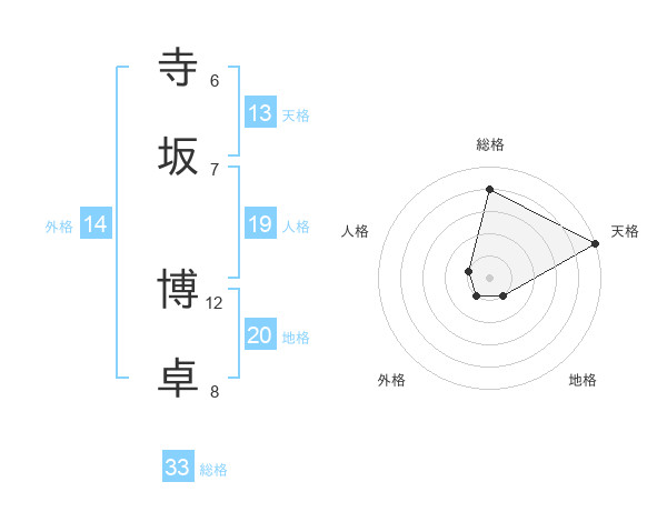 寺坂 博卓さんの総格は33画の4点!