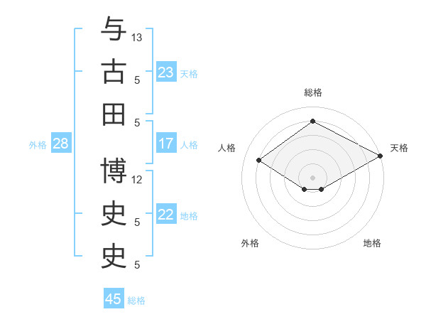 与古田 博史史さんを姓名の画数から五運を鑑定