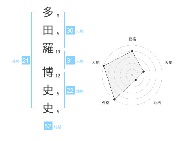 多田羅 博史史さんを姓名の画数から五運を鑑定