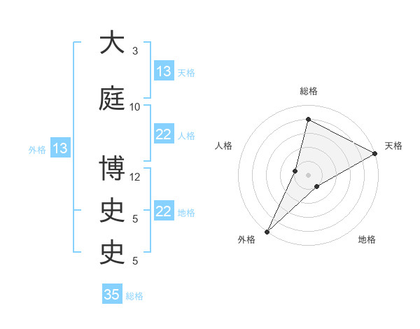 大庭 博史史さんを姓名の画数から五運を鑑定