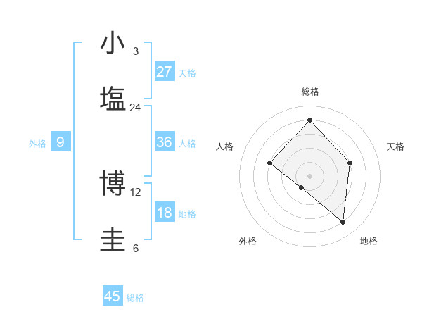 小塩 博圭さんを姓名の画数から五運を鑑定