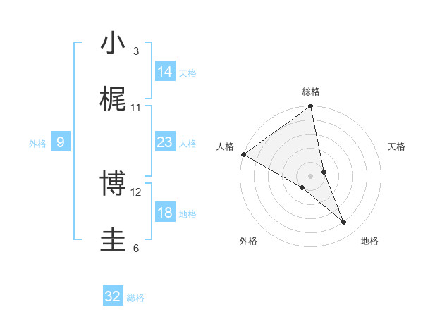 小梶 博圭さんを姓名の画数から五運を鑑定