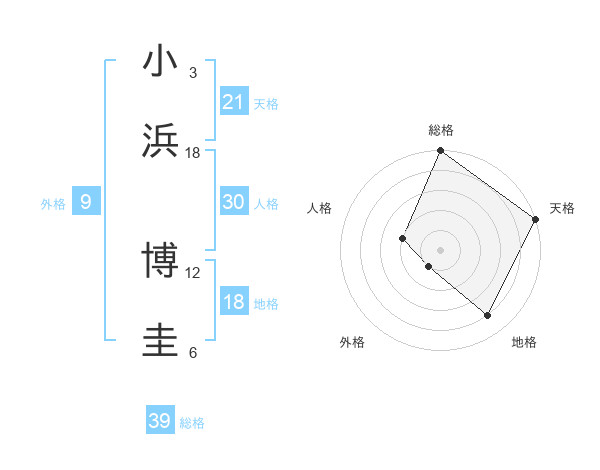 小浜 博圭さんを姓名の画数から五運を鑑定