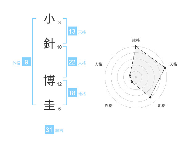 小針 博圭さんの総格は31画の5点!