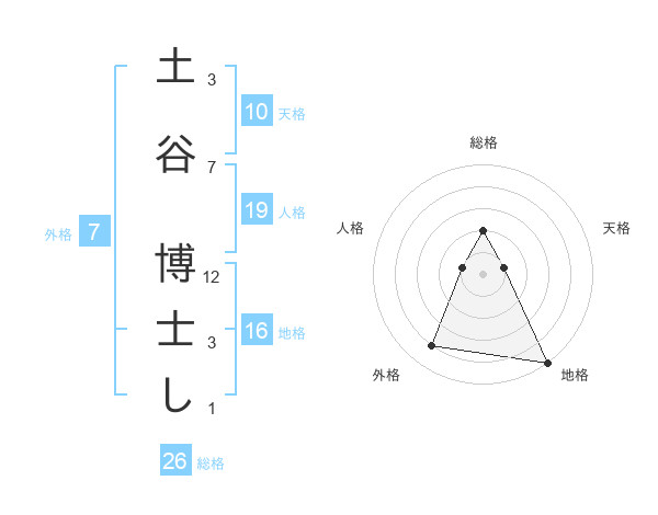 土谷 博士しさんを姓名の画数から五運を鑑定