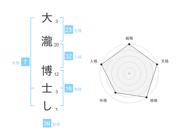 大瀧 博士しさんを姓名の画数から五運を鑑定