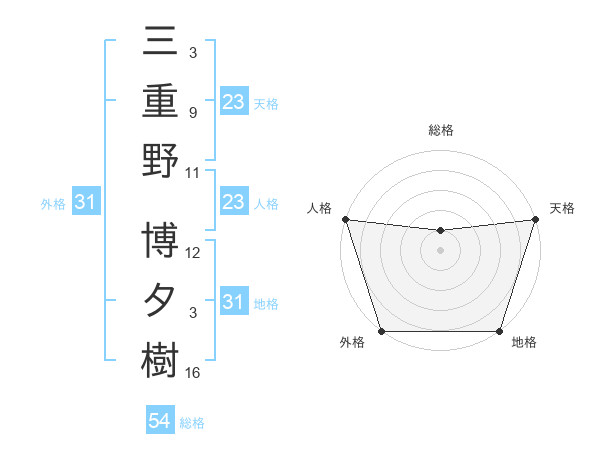三重野 博夕樹さんの外格は31画の5点