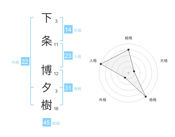 下条 博夕樹さんを姓名の画数から五運を鑑定
