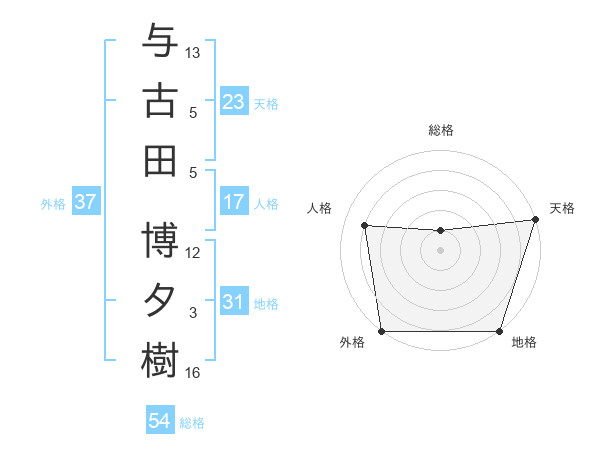 与古田 博夕樹さんを姓名の画数から五運を鑑定