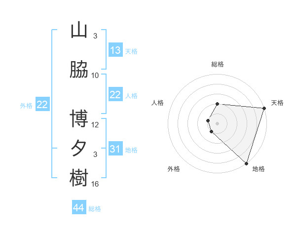 山脇 博夕樹さんを姓名の画数から五運を鑑定