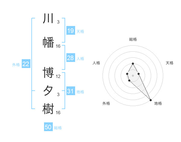 川幡 博夕樹さんの総格は50画の2点!