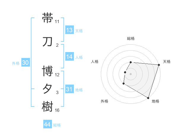帯刀 博夕樹さんの総格は44画の2点!