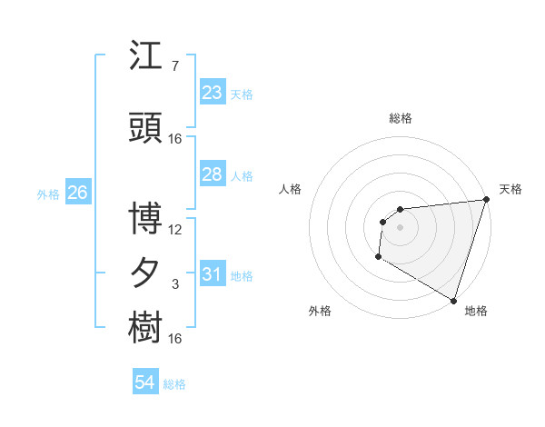 江頭 博夕樹さんを姓名の画数から五運を鑑定