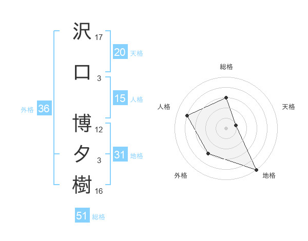 沢口 博夕樹さんを姓名の画数から五運を鑑定