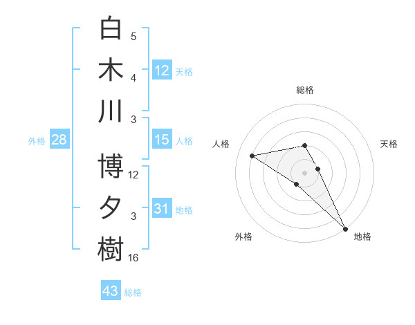 白木川 博夕樹さんの地格は31画の5点!