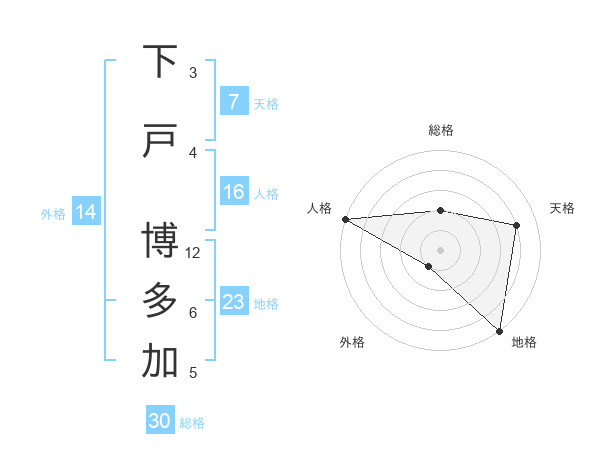 下戸 博多加さんを姓名の画数から五運を鑑定