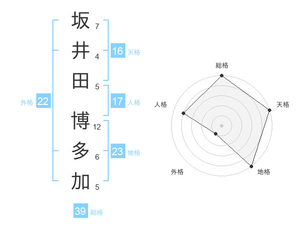 坂井田 博多加さんを姓名の画数から五運を鑑定