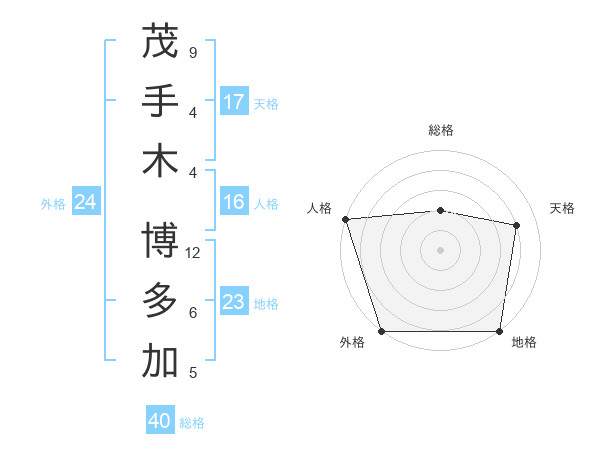 茂手木 博多加さんを姓名の画数から五運を鑑定