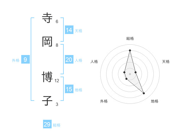 寺岡 博子さんを姓名の画数から五運を鑑定