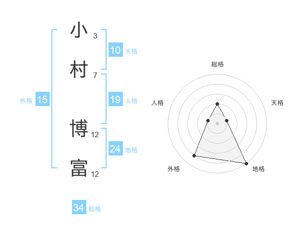 小村 博富さんの総格は34画の2点!