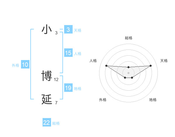 小 博延さんの総格は22画の1点!