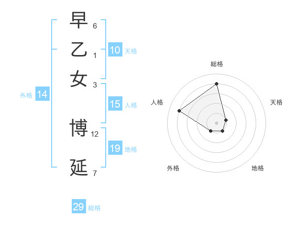 早乙女 博延さんを姓名の画数から五運を鑑定