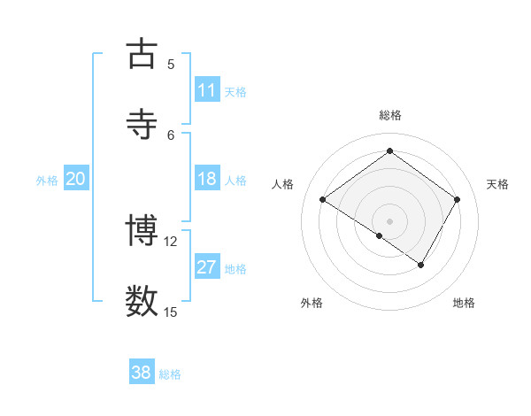 古寺 博数さんの総格は38画の4点!