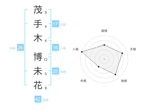 茂手木 博未花さんの天格は17画の4点!