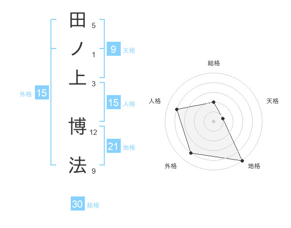 田ノ上 博法さんを姓名の画数から五運を鑑定