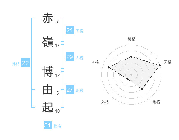 赤嶺 博由起さんの総格は51画の3点!