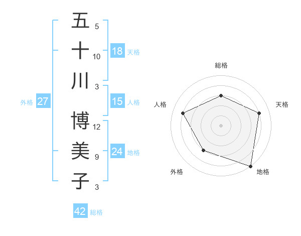 五十川 博美子さんを姓名の画数から五運を鑑定
