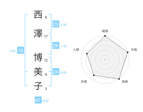 西澤 博美子さんを姓名の画数から五運を鑑定