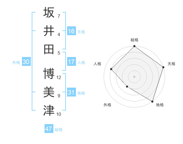 坂井田 博美津さんを姓名の画数から五運を鑑定