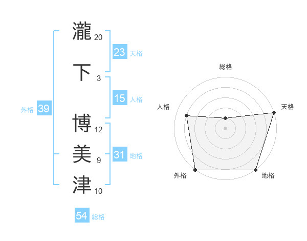 瀧下 博美津さんの天格は23画の5点!