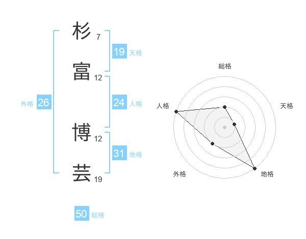 杉富 博芸さんの総格は50画の2点!