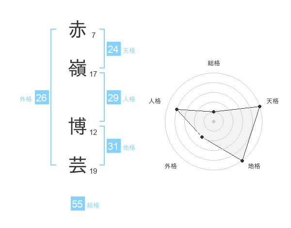 赤嶺 博芸さんを姓名の画数から五運を鑑定
