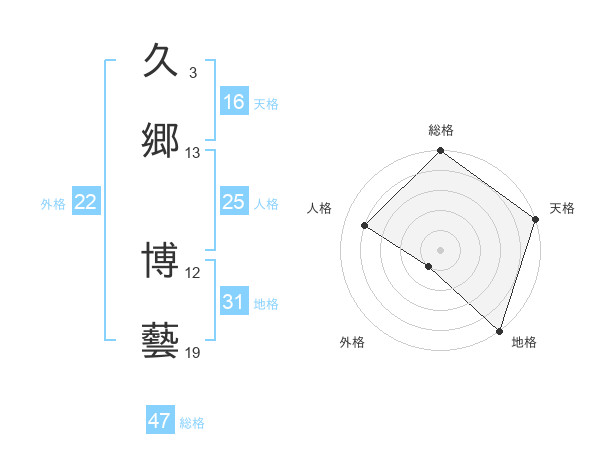 久郷 博藝さんを姓名の画数から五運を鑑定