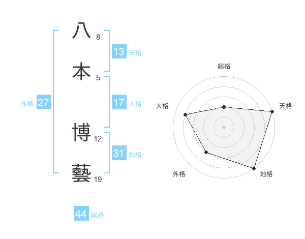 八本 博藝さんの天格は13画の5点!