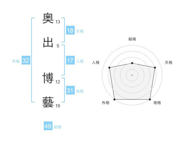 奥出 博藝さんを姓名の画数から五運を鑑定