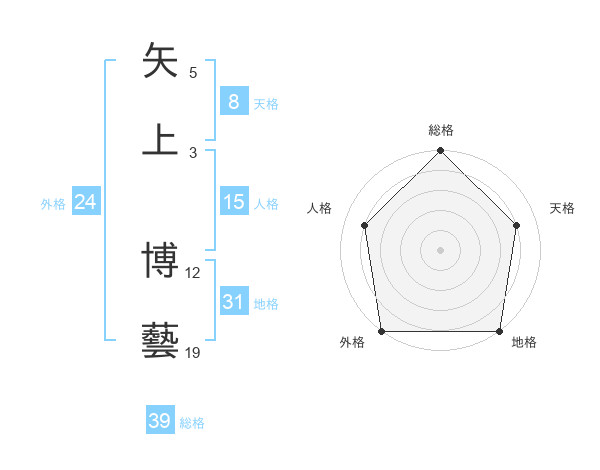 矢上 博藝さんを姓名の画数から五運を鑑定