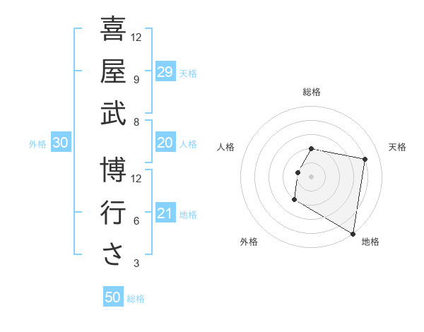 喜屋武 博行ささんを姓名の画数から五運を鑑定