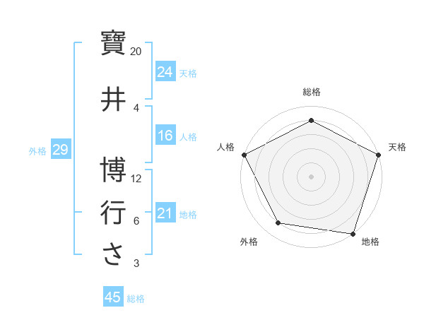 寶井 博行ささんを姓名の画数から五運を鑑定