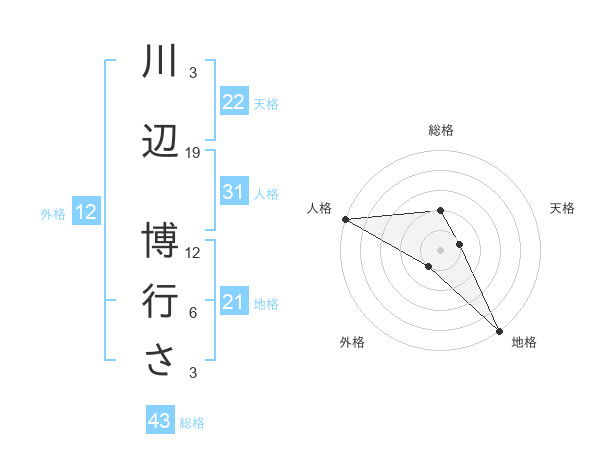 川辺 博行ささんを姓名の画数から五運を鑑定