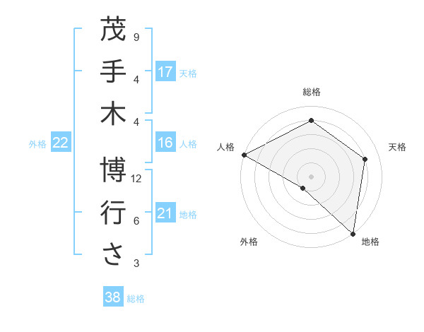 茂手木 博行ささんを姓名の画数から五運を鑑定
