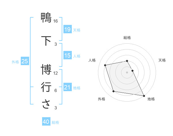 鴨下 博行ささんを姓名の画数から五運を鑑定